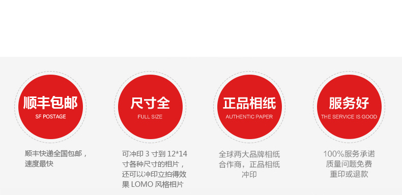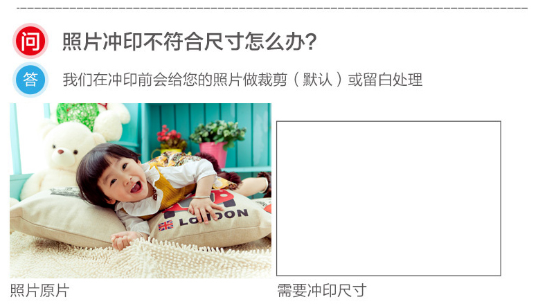 答:亲,我们承诺服务,不满意免费重印,我们希望冲印的照片都会让您满意,并且长时间保存留念,我们为您做的只是冲印一张照片,只有您才能赋予照片灵魂,充满回忆 。 |