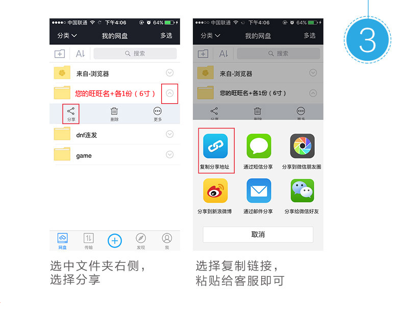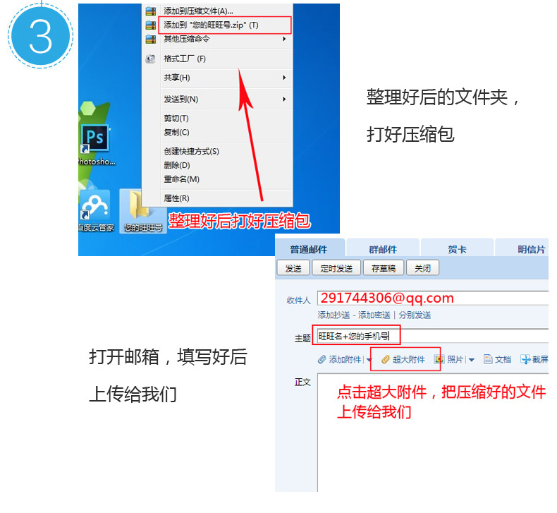 答:我们有2种上传方式,可以使用云盘或者邮箱传给我们,亲可以先下单,传好后通知我们即可,收到后就会为您安排生产制作发货。具体操作可联系客服哦! |