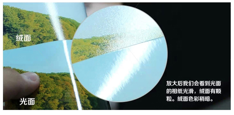 答:光面相纸表面光滑,颜色鲜艳,是常见的类型,会有反光现象,容易留指纹,一般适合自己外出游玩的随拍照片。 |