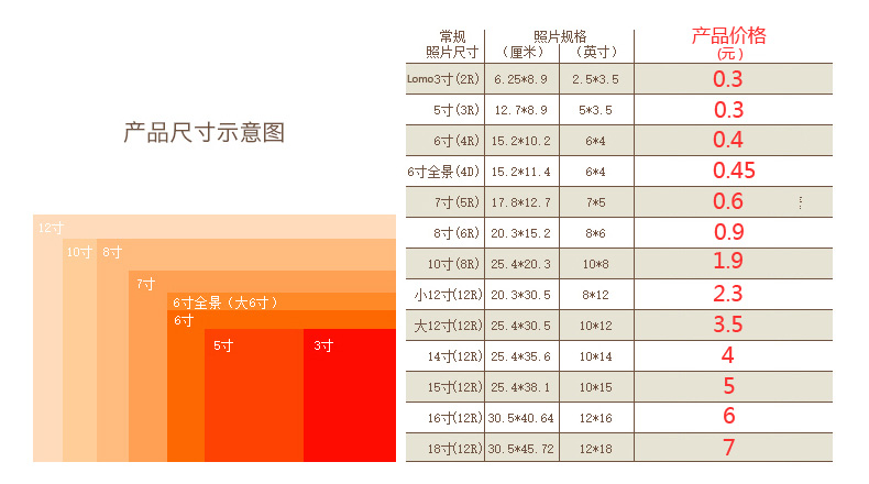 优 惠:5寸照片0.3元,更尺寸优惠请咨询客服