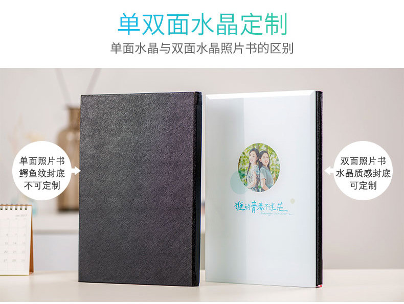 产品特点:水晶封面 装订高档 相纸冲印 淋膜防水