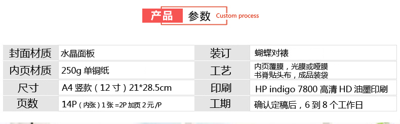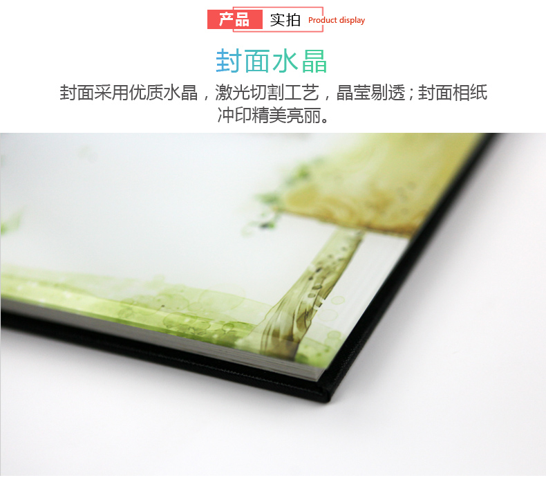 产品特点:水晶封面 蝴蝶对裱 内页覆膜 超清印刷