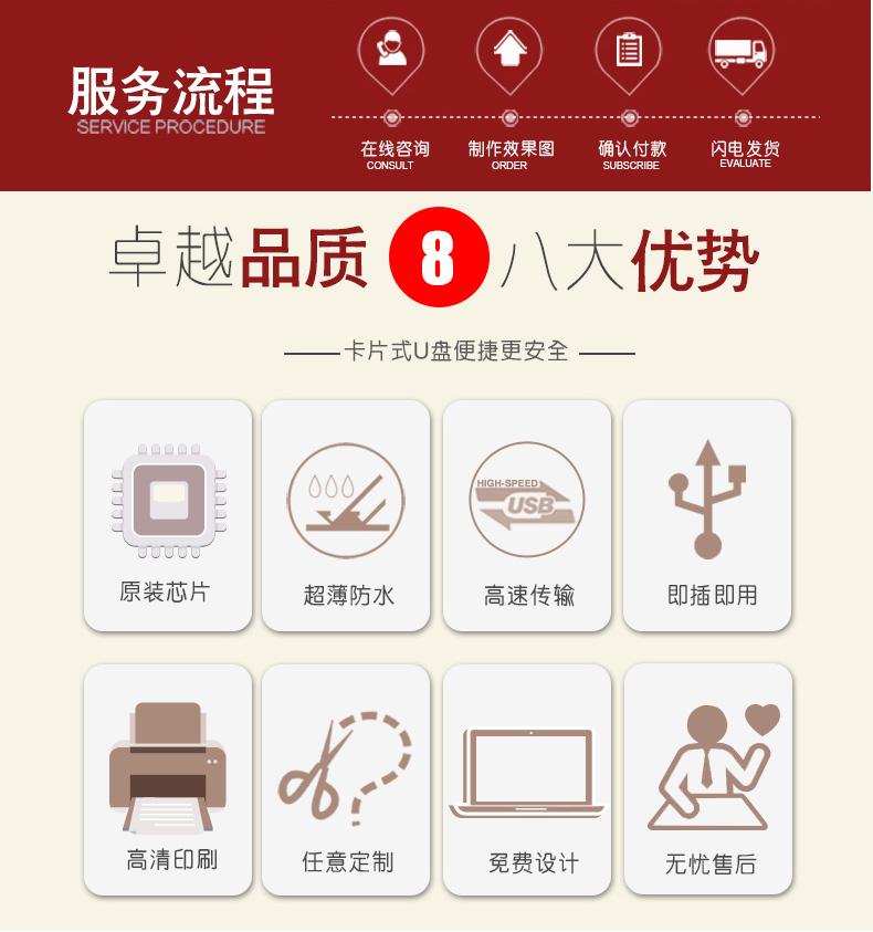 产品特点:原装芯片 超薄防水 即插即用 内存8G